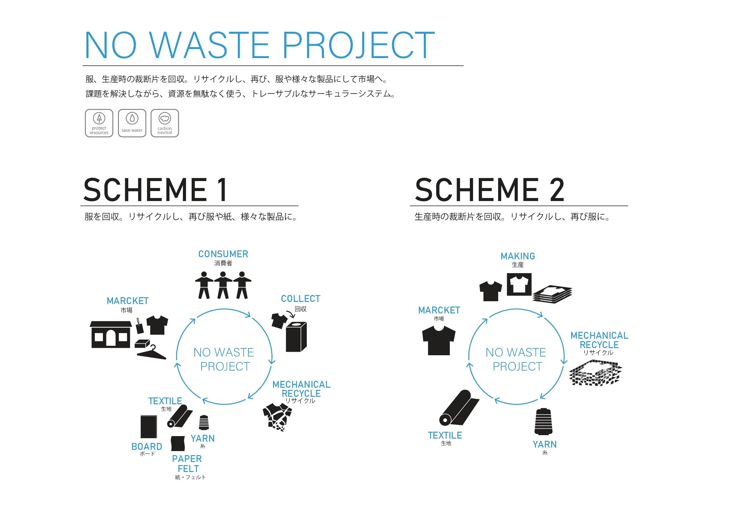アパレル製品を作る際にどうしても発生してしまう生地の裁断くずを粉砕して繊維に戻し、再紡績して糸や生地、商品に生まれ変わらせる「全て無駄にしない」をコンセプトに構築された循環システムです。