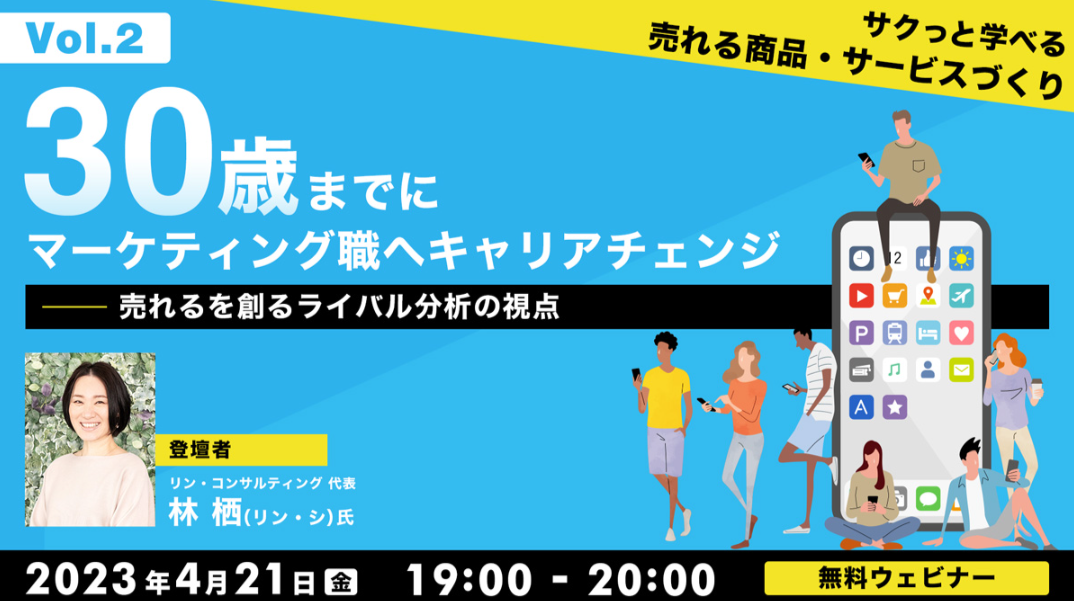 - 30歳までにマーケティング職へキャリアチェンジ “サクっと学べる”売れる商品・サービスづくり ~売れるを創るライバル分析の視点~