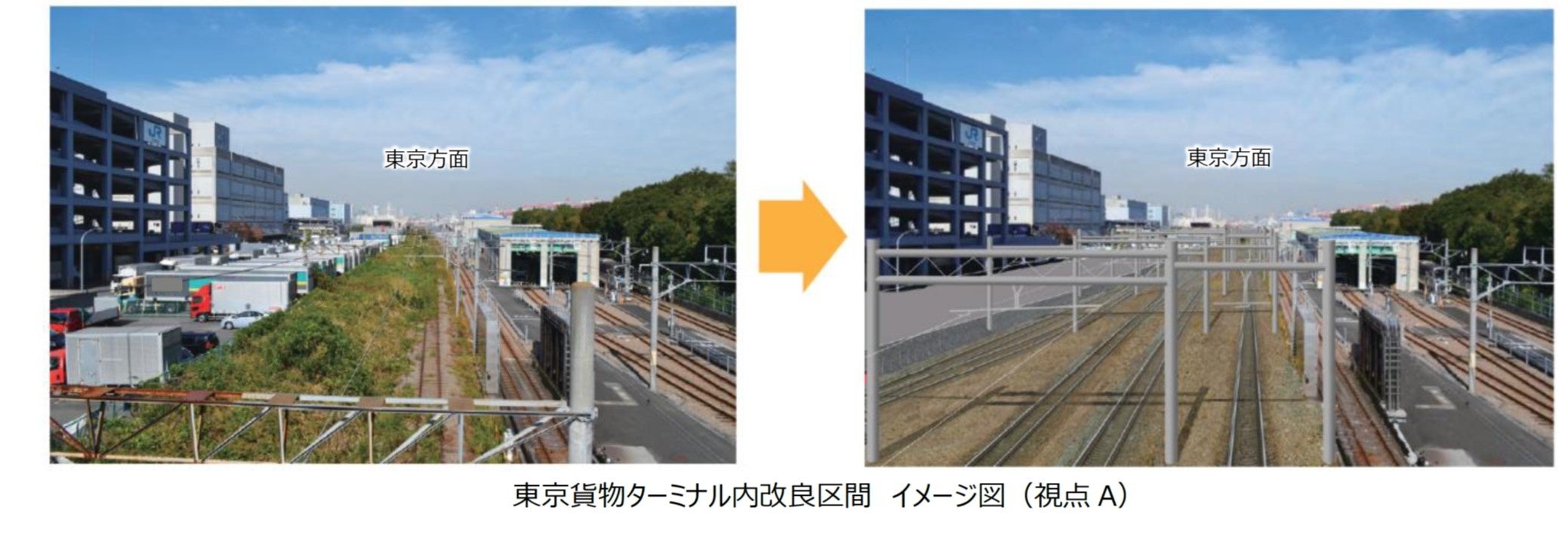 東京貨物ターミナル内にJR東日本が保有している用地を用いて、羽田空港アクセス線(仮称)の運行に必要となる車両留置線や保守基地線を整備(約23,000㎡)します。