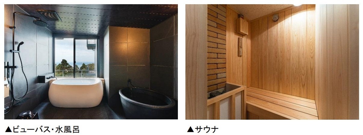 この度、34室を22室にすることで客室を拡張するのに合わせ、全室を温泉付のスイートルーム仕様とし、リニューアルオープンいたしました。大浴場にはサウナを完備しておりますが、この度一部客室(10室)にもサウナと水風呂を設置し、プライベート空間で「ととのう」を満喫いただけるようになりました。エントランス部分にはオープンカフェを設置するほか、会議室や外観、屋上などの整備もおこない、お客さまにラグジュアリー感をさらに感じていただけるホテルへ刷新しました。