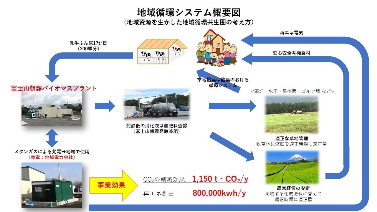 燃料:富士宮市朝霧地域の酪農家から収集した牛ふん(17t/日・約300頭分)