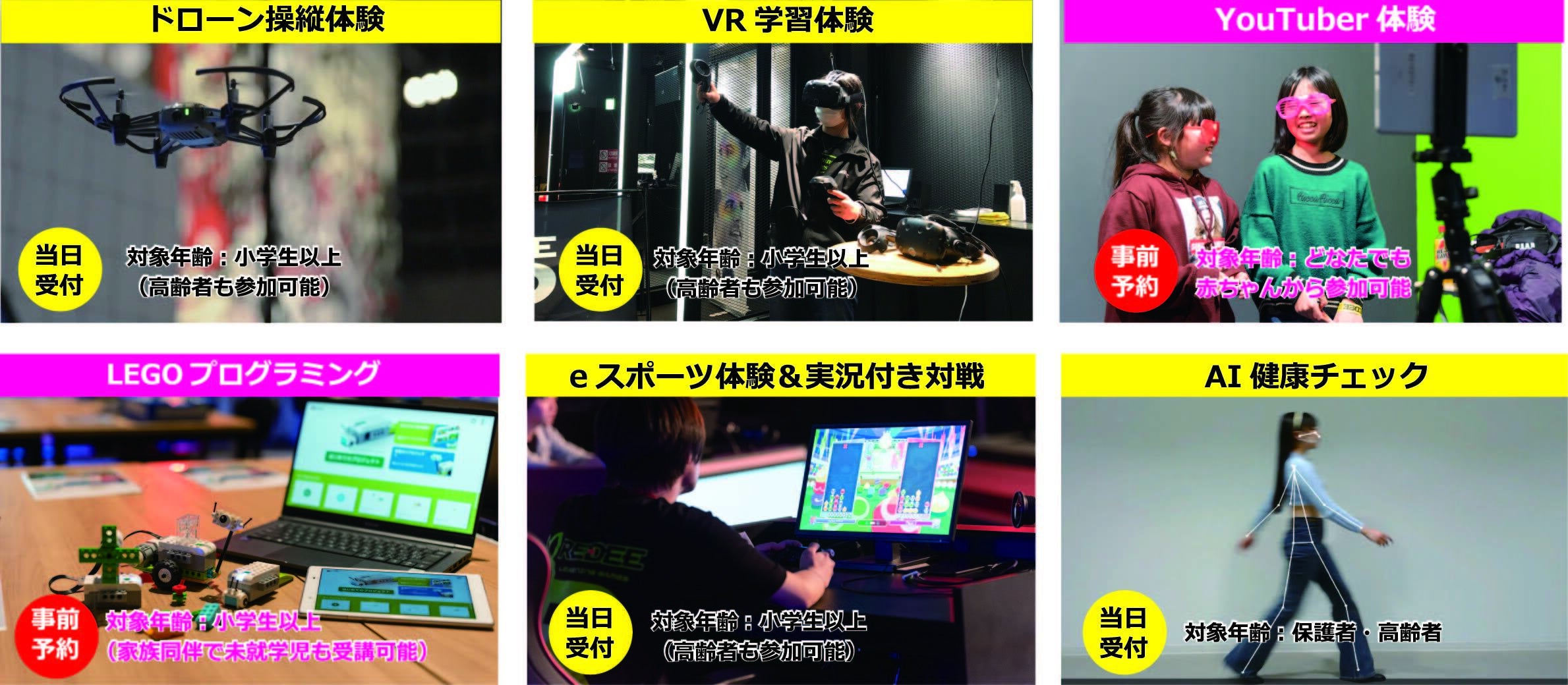 ・LEGOプログラミング・YouTuber体験は、事前予約が必要です。サイト上での予約は先着順となります。