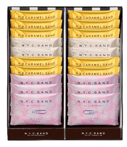 N.Y.C.SAND定番人気の「キャラメルサンド」と「スカッチサンド」に季節限定商品「ベリーキャラメルサンド」を入れた限定詰合せギフトボックスです。