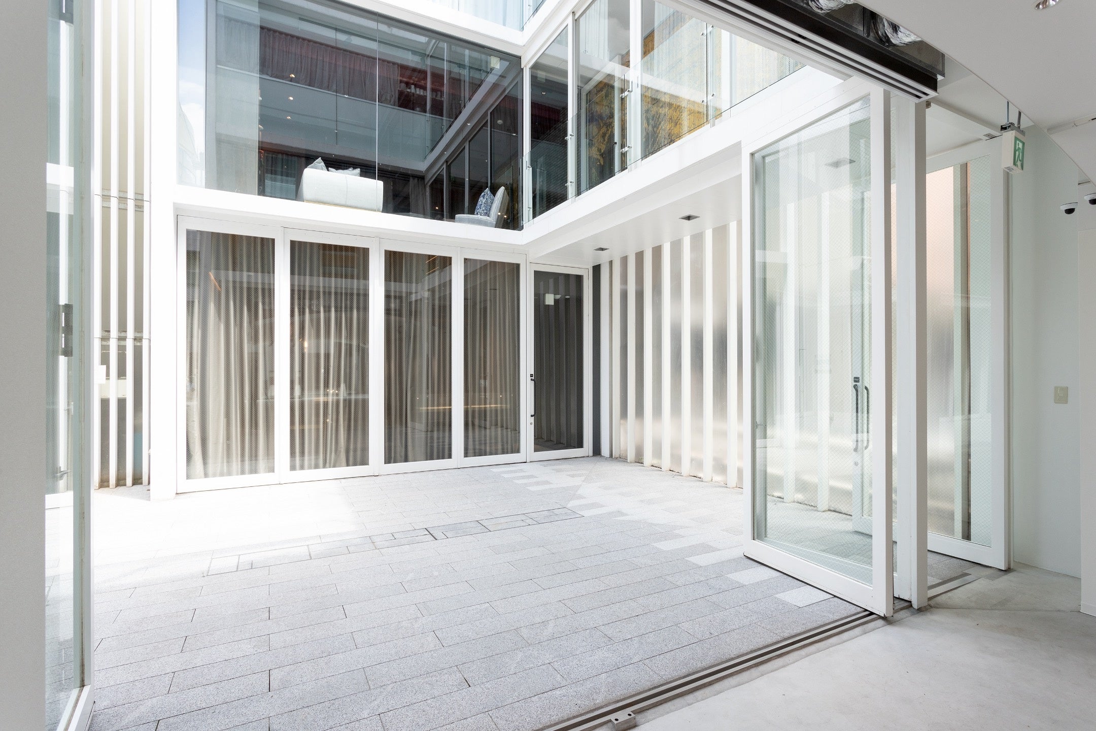 約100平米(約30 坪)というギャラリースペースとしては十分な広さに加え、開放的な中庭スペースもあります。