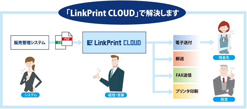 LinkPrint CLOUDは請求書(インボイス)などの各種帳票発行業務をクラウド化し、電子送付などによる業務やシステムの効率化やコストダウンを実現するクラウドサービスです。