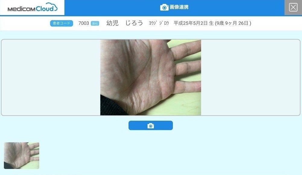 タブレットに搭載のカメラで患部や保険証などを撮影し、ケーブル接続等を行わずに画像データを格納できます。これにより、在宅診療中にも患者さんを撮影した写真をカルテに取り込むことができ、業務時間の短縮につながります。