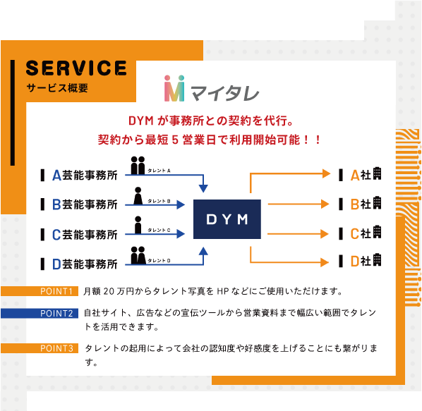 今回のマイタレはWEB事業の新サービスです。広告代理店としての強みを活かしながら新規拡販強化ならびにタレント活用による広告効果最大化をすることが可能です。