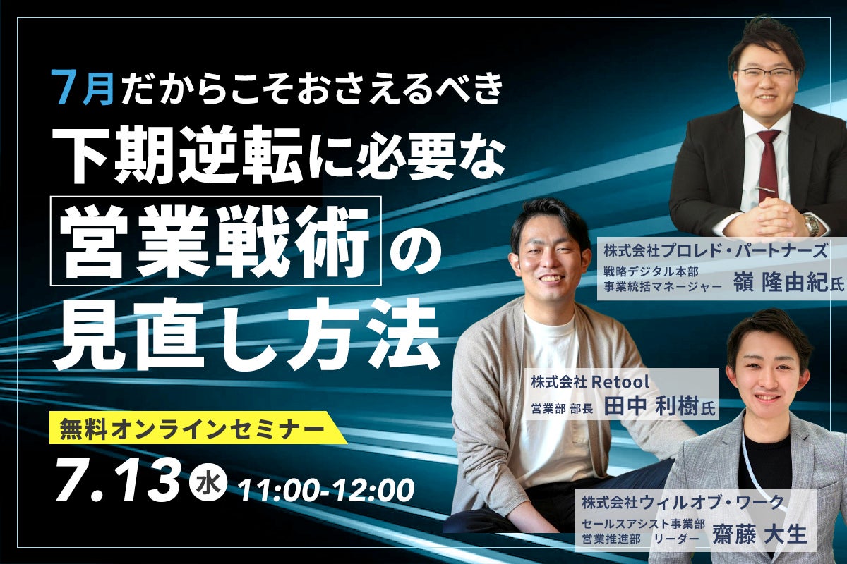 | 参加方法 | Zoom配信 お申込み完了後、別途「ブラウザ閲覧用URL」をメールでお送りします。 ▼お申込みはこちら https://willof-work.co.jp/salesmedia/event/5272 |