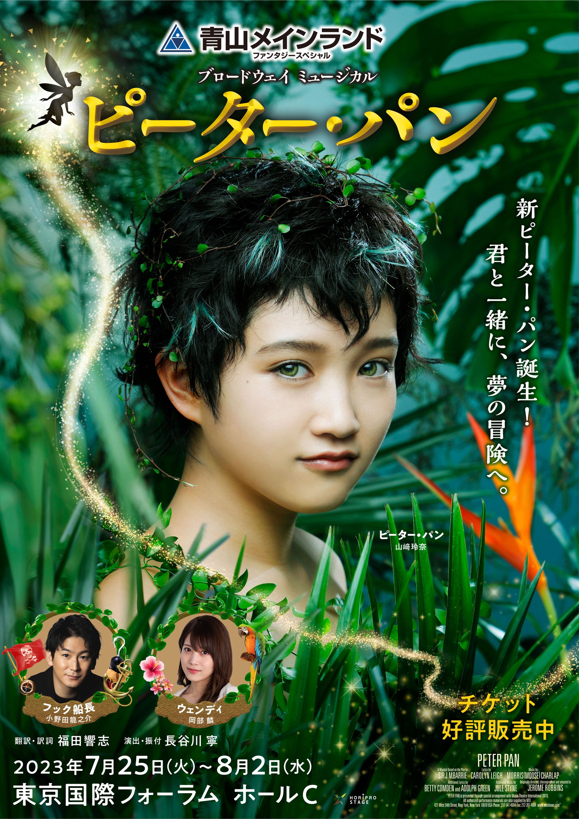 1981年の日本初演から43年間、毎年夏に多くの大人と子どもに親しまれてきた『ピーター・パン』。11代目の新たなピーター・パンを山﨑玲奈、フック船長を小野田龍之介が演じます。ピーターを慕うウェンディ役は、昨年に続きAKB48の岡部麟が務めます。この夏、新たなピーター・パンと夢の冒険に出かけよう!
