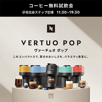 “至福のコーヒー体験”をお楽しみいただくトータルサポートの提供にこだわり続けている、 「NESPRESSO」の新コーヒーメーカー「ヴァーチュオ ポップ」で抽出したコーヒーをお楽しみいただける無料試飲会を開催いたします。