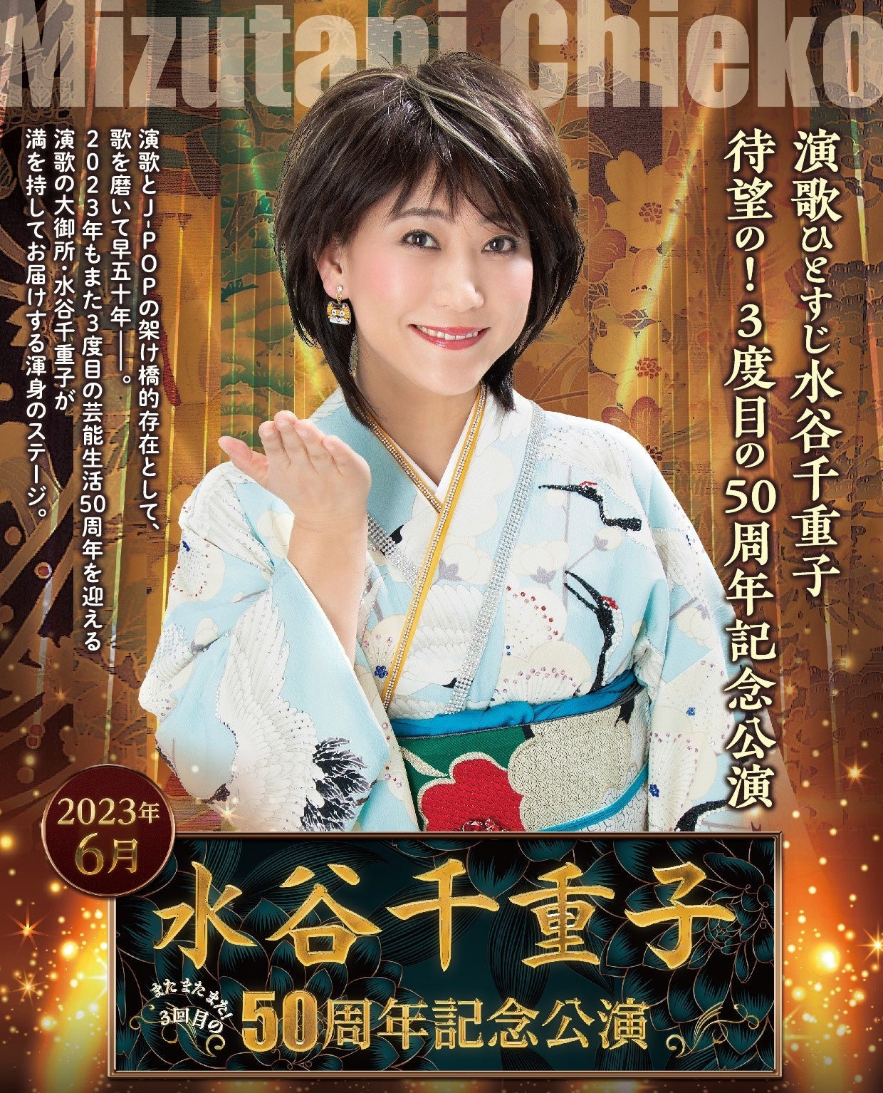 2023年6月に3度目となる芸能生活50周年記念公演が明治座で決定!「Hibiya Festival 2023」では、明治座公演に先駆けて水谷千重子による特別ステージをお届けします。