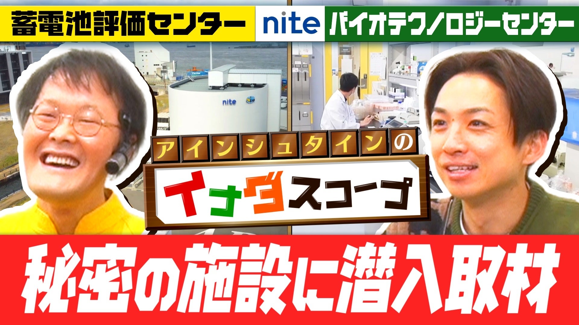 本動画では、普段見ることの出来ない「蓄電池評価センター(NLAB)」や「NITEバイオテクノロジーセンター(NBRC)」の施設にアインシュタインが潜入し、特殊カメラを搭載した「イナダスコープ」として、NITEの施設や業務、職員の魅力に迫ります。