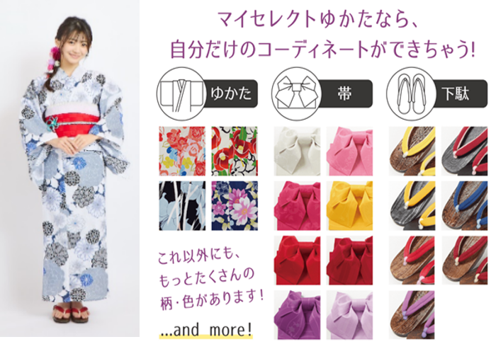 花火大会や夏祭りの再開で高まる需要にお応えし、店頭ではゆかたの展開を拡大します。なかでも、様々なコーディネートを楽しむ“Z世代”へのおすすめとして、ゆかたと帯、下駄を自由に組み合わせられるセットゆかたの品揃えを拡充します。