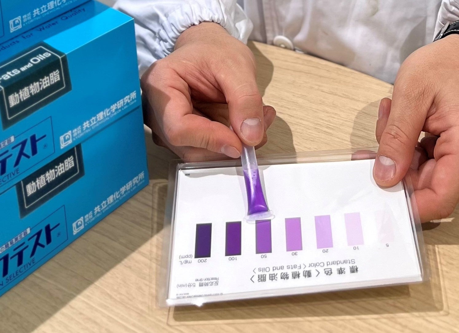 「台所で油を流してはいけない」とよく耳にすると思いますが、油脂を排水管に流すと、水質汚濁や配管詰まりの原因となります。排水中の油脂濃度を簡単にチェックする検査キットの要望が大きかったため、今回新たに自社開発して製品発売に至りました。