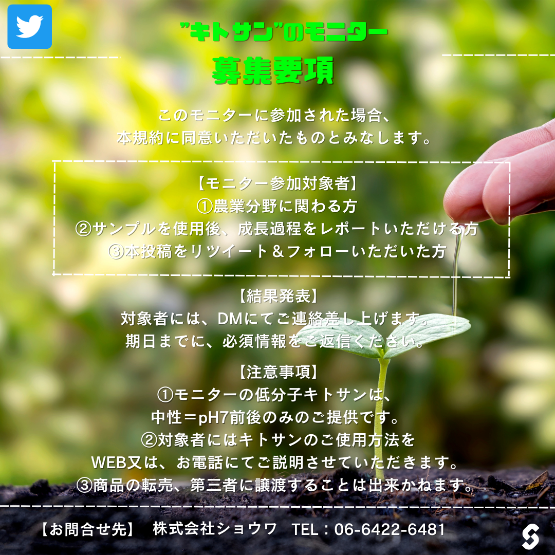 製品化に向けて、ショウワ開発の低分子キトサンを使用しレポートにご協力いただける方のご応募をお待ちしております。