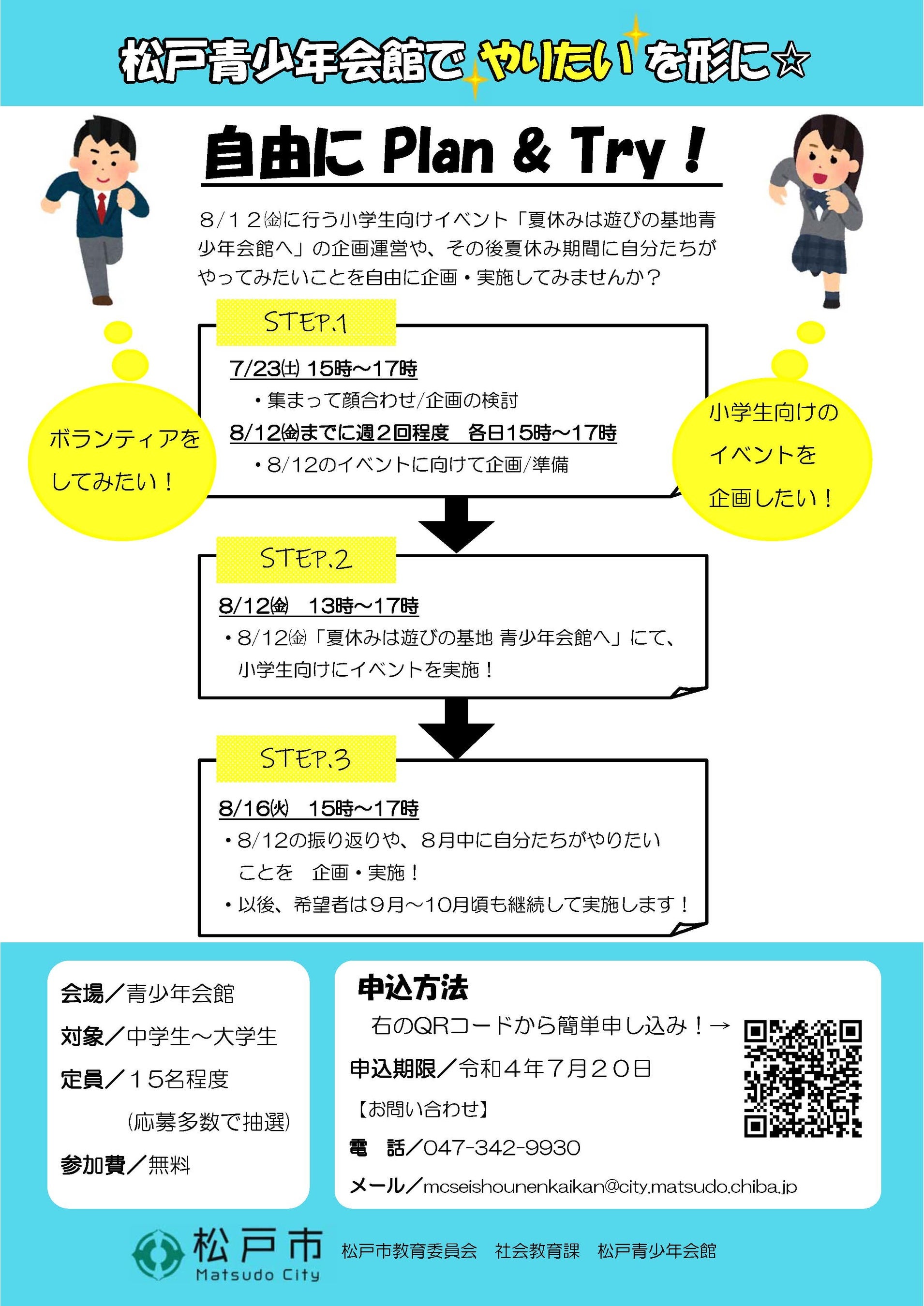 ※申し込まれた方にメールで詳細を返信しますmcseishounenkaikan@city.matsudo.chiba.jp からのメールを受信できるように設定をお願いします。