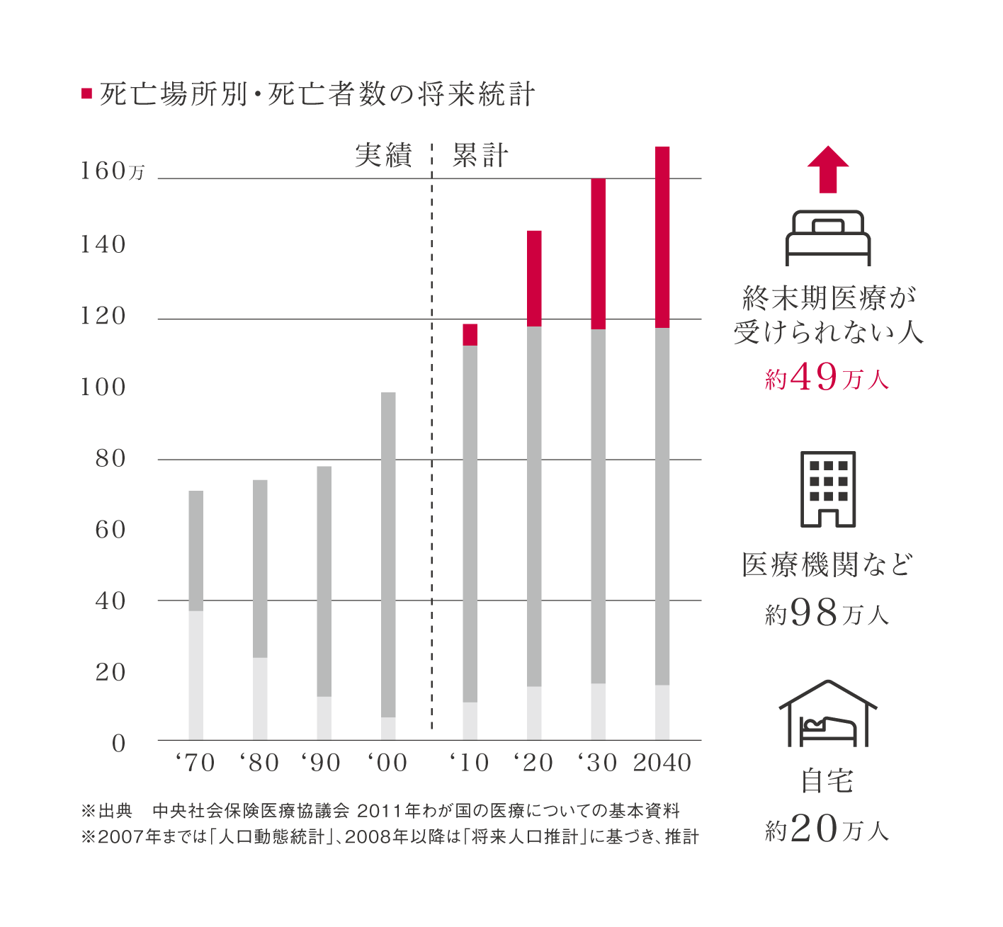 かつて経験したことのない、高齢・多死社会が近づく中、2040年には49万人が終末期医療を受けられない可能性があると言われています。
