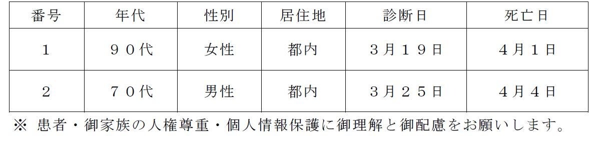 新型コロナウイルスに関連した患者の死亡について business Twitter Facebook はてブ Pocket LINE コピー 2023.04.06 この記事は約1分で読めます。 都内で新型コロナウイルスに感染した方が死亡されましたのでお知らせします。 お亡くなりになった方のご冥福をお祈り申し上げます。 1 新型コロナウイルスに関連した死亡者(本日公表分) 2 新型コロナウイルスに関連した死亡者の累計 8,067人