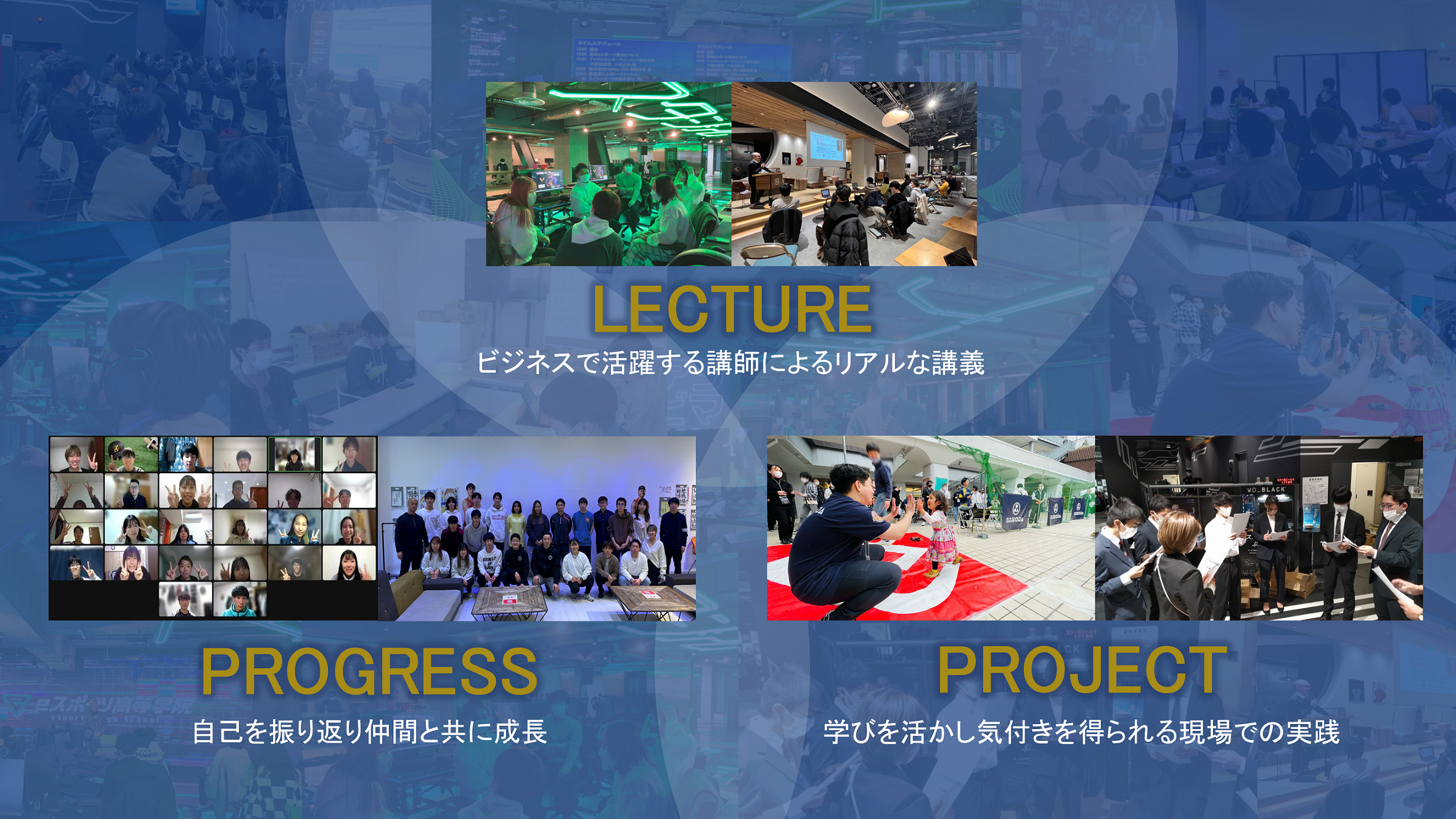 アウトプットの面では、スポーツイベントを企画から運営まで行ったり、実際にセールスに挑戦したり、eスポーツやプロスポーツチームの現場に携わるなど、講義で得た知識を実践の場で活用することで学びを身につけていきます。