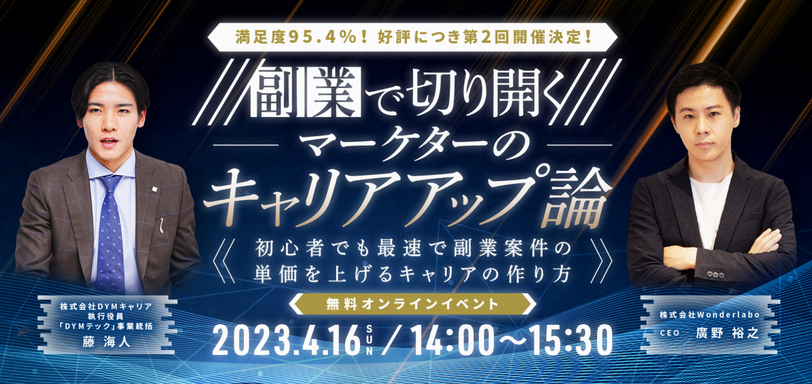 また、株式会社DYMキャリアの執行役員であり、DYMテック事業統括である藤海人氏も特別講師にお迎えし、人材事業を展開する会社の役員だからこそ話せる、人材領域や副業についてのリアルな話についても、お話いただきます。