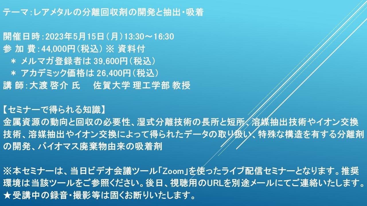 金属資源の動向と回収の必要性、湿式分離技術の長所と短所、溶媒抽出技術やイオン交換技術、溶媒抽出やイオン交換によって得られたデータの取り扱い、特殊な構造を有する分離剤の開発、バイオマス廃棄物由来の吸着剤