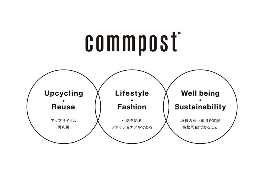 共有、共同、常識、良識を意味する「common(sense)」と郵便・提示する・標柱を意味する「post」を組み合わせた造語。敷居が高いと思われがちな「アップサイクル」という考え方に、ファッションの分野から、スタイルのある新しい価値や考え方を提示していく。