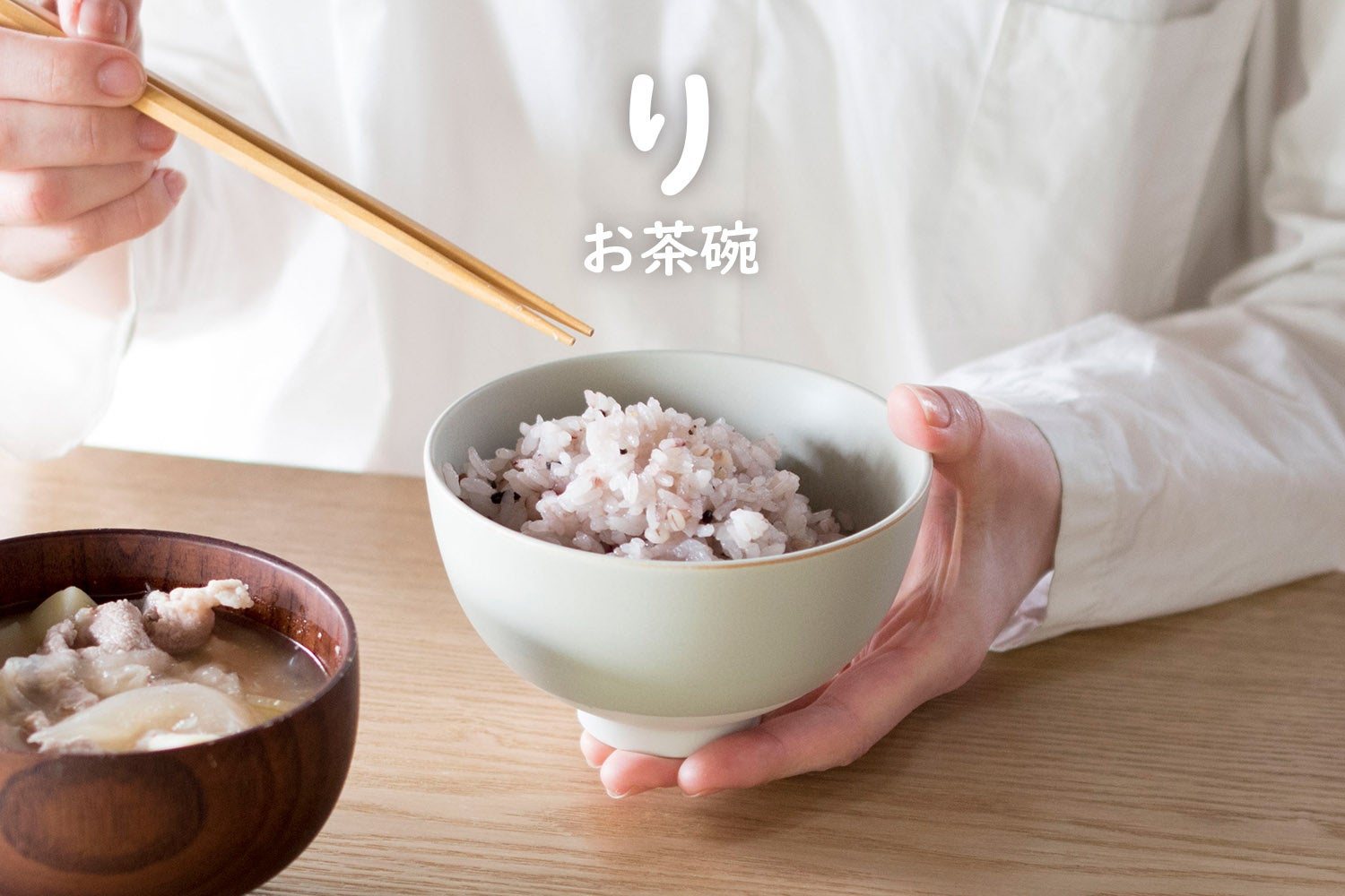 お茶碗のボディに使われている粘土や、色付けに使われる釉薬の中に、使われなくなった食器を細かく砕いてパウダー状にして配合。