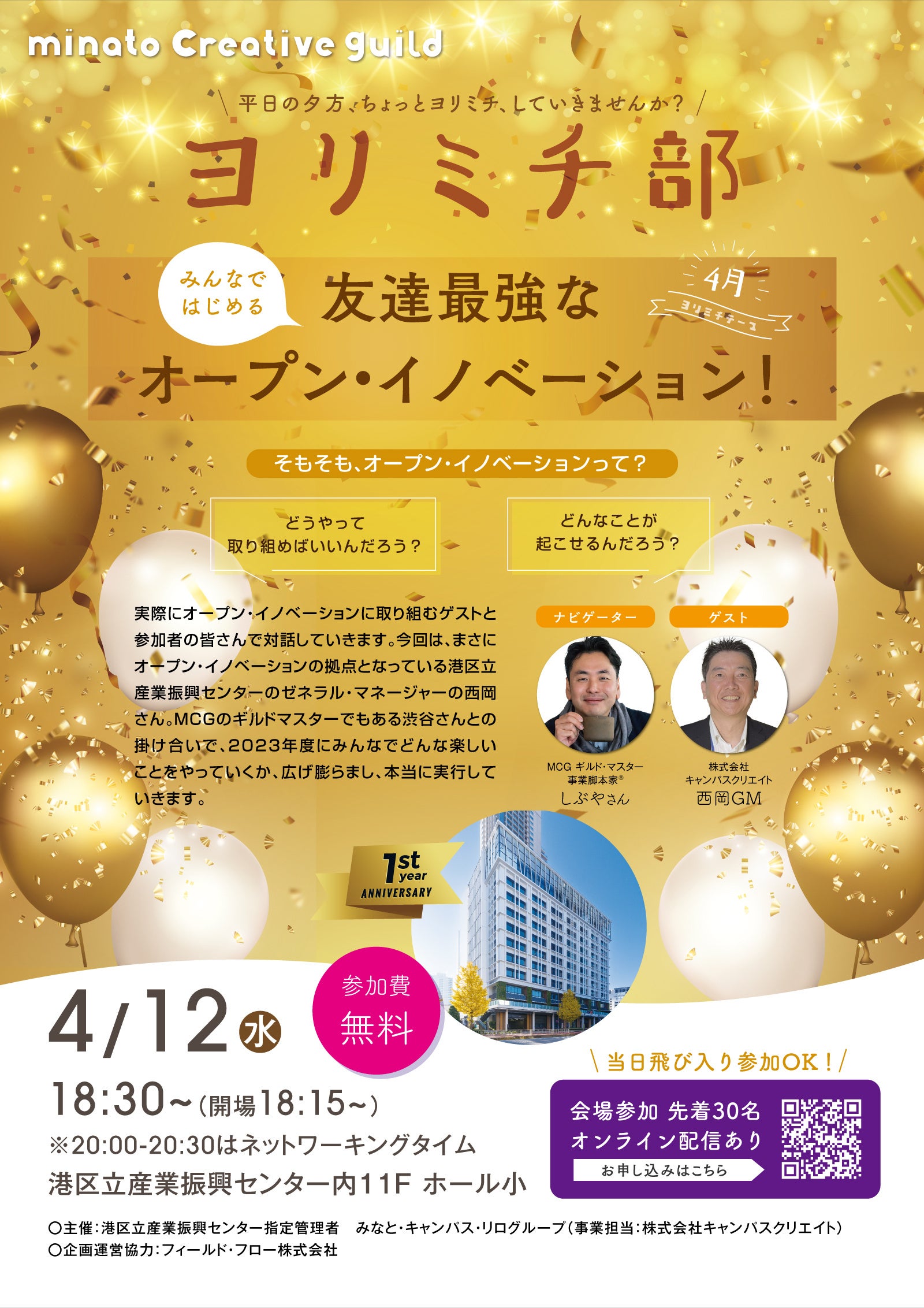いつもとはちょっと違う人たちと、いつもとはちょっと違う会話を楽しむ井戸端会議「ヨリミチ部」。2023年度もゆるく楽しくやっていきます。第1弾となる4月のテーマはオープン・イノベーション!