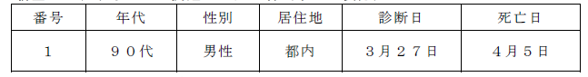 新型コロナウイルスに関連した患者の死亡について business Twitter Facebook はてブ Pocket LINE コピー 2023.04.07 この記事は約1分で読めます。 都内で新型コロナウイルスに感染した方が死亡されましたのでお知らせします。 お亡くなりになった方のご冥福をお祈り申し上げます。 1 新型コロナウイルスに関連した死亡者(本日公表分) 2 新型コロナウイルスに関連した死亡者の累計 8,069人