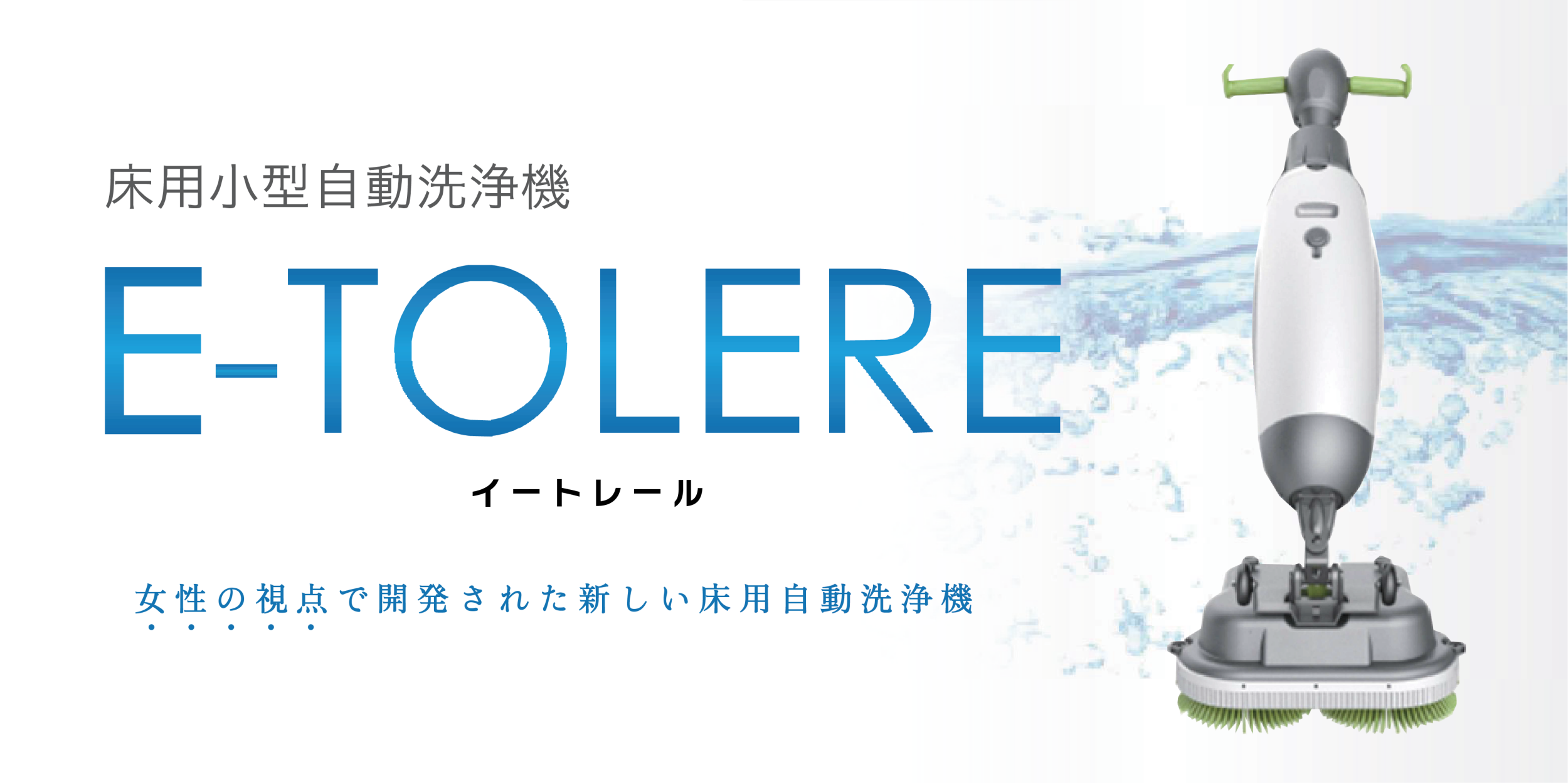 そこで今回紹介したいのは、株式会社TSCが扱っている「床用小型自動洗浄機・E-TOLERE(イートレール)」です。これはオフィスやホテル・レストランなどの床を洗浄する機械です。