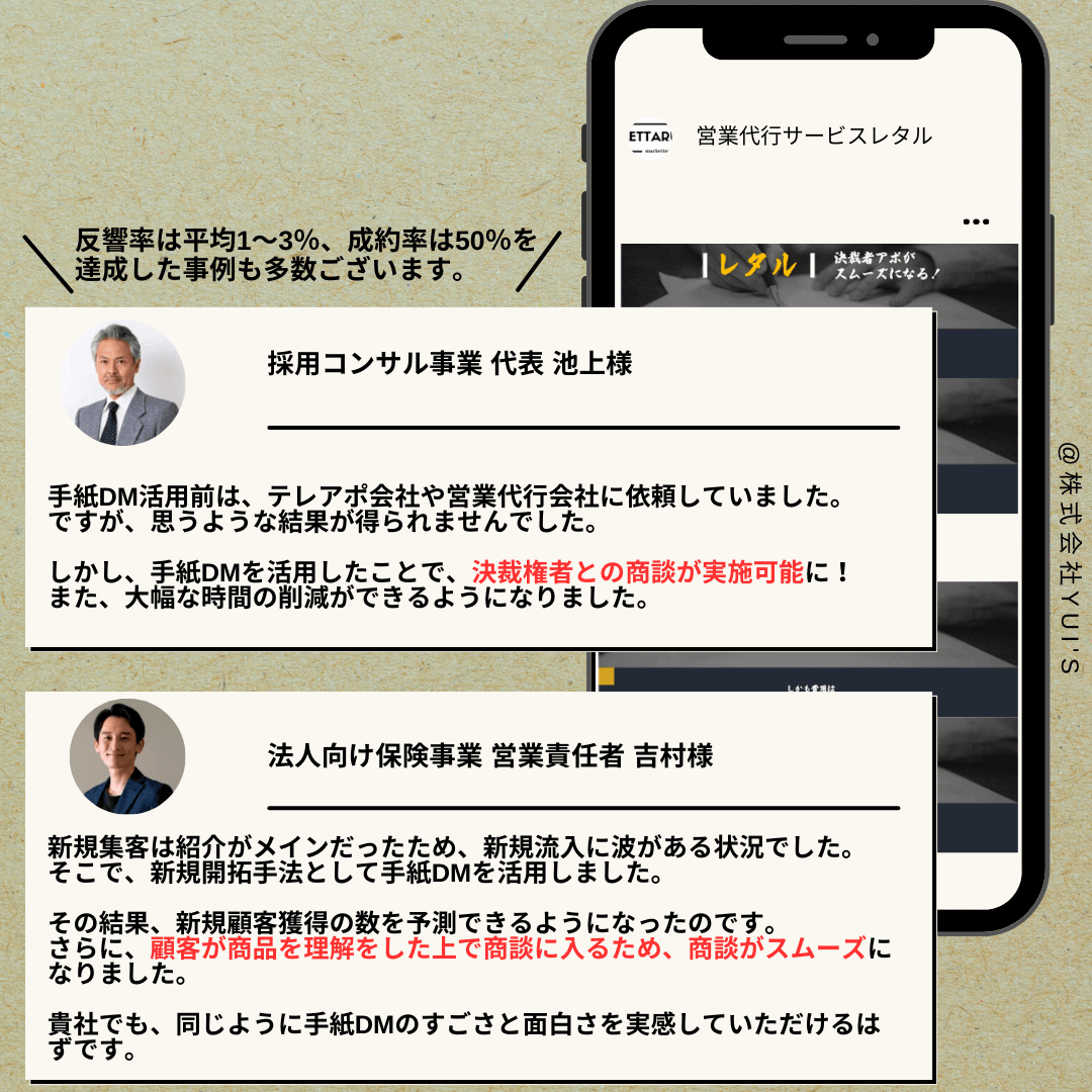 レタルとは、株式会社Yui’sによる、手紙を使った法人向け新規開拓の営業代行サービスです。