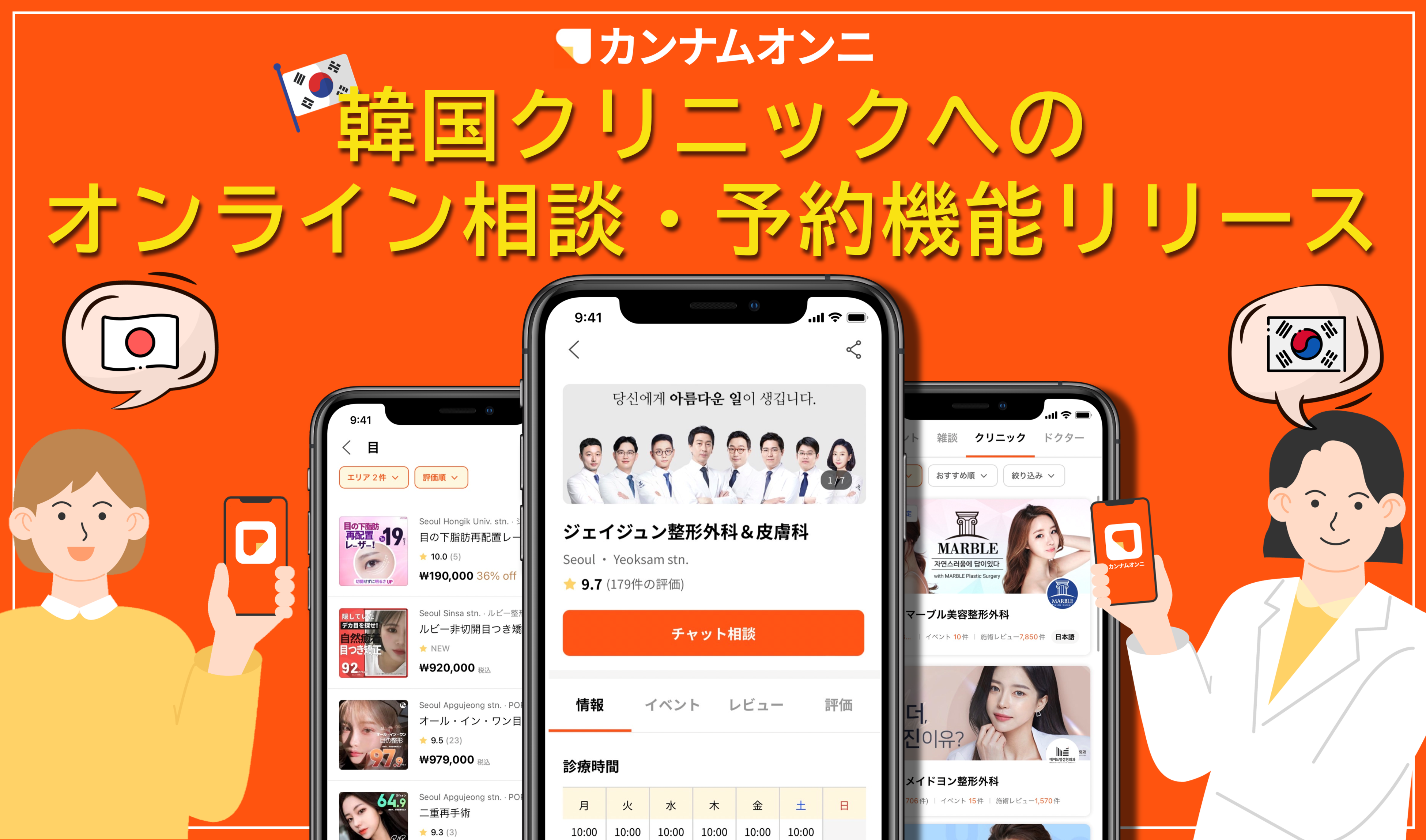 カンナムオンニは、日本人ユーザーがアプリを通じて韓国のクリニックへ美容医療・整形に関する相談や予約が出来る「渡韓クロスボーダー機能」を本リリースします。近年、新型コロナウイルス感染症の影響で渡韓の難易度が高くなっていましたが、直近の渡航緩和により、日本人ユーザーの韓国クリニックへの関心が過去以上に高まりを見せています。