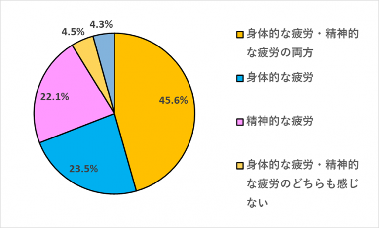 - 「身体的な疲労と精神的な疲労の両方」を感じている人は、4割以上
