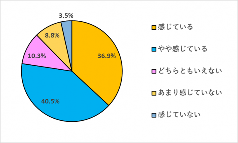 「あなたは、普段の生活で慢性的な疲労を感じていますか?」という質問に対し、「感じている」が36.9%、「やや感じている」が40.5%となり、合わせると7割以上の人が慢性的な疲労を感じていることが分かりました。