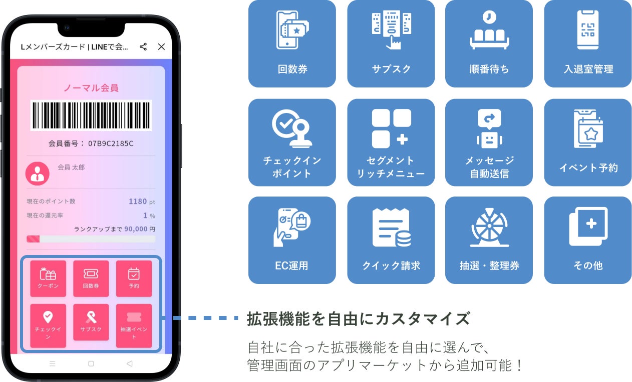 Lメンバーズカードでは、様々な業種に対応した15種類以上の拡張機能を追加料金なしで利用 できます。