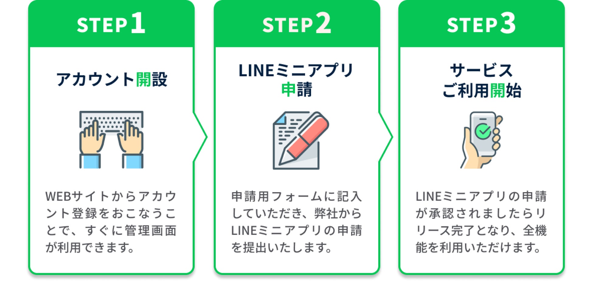 申請用フォームに記入していただき、弊社からLINEミニアプリの申請を提出いたします。