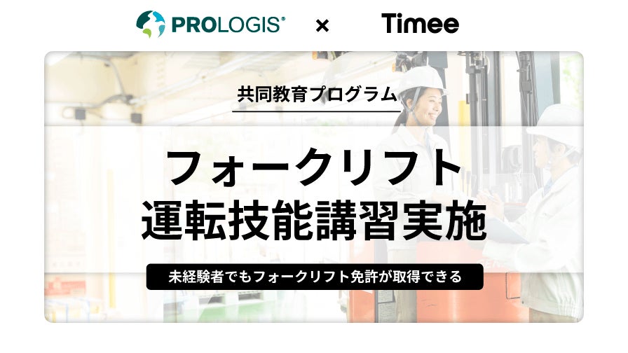 EC需要の拡大を背景に物流業界の人手不足は深刻さを増し、来春には働き方改革関連法の施行にともなう「物流の2024年問題」が危惧されるなど、物流業界の労働課題の対応が急務とされています。タイミーでは、これまで物流倉庫内の荷上げ・荷下ろしや荷物の仕分け・検品、ピッキング・梱包などの軽作業の求人を掲載し、業務の切り分けによる労働環境改善に取り組んでまいりました。プロロジスでは、物流業界のリーダー人材の育成プログラムを継続しながら、昨年より、フォークリフトの運転免許資格取得の支援を通じた、庫内人材のスキルアップにも取り組んでいます。このたび両社共同で教育プログラム「フォークリフト運転技能講習」を実施し、働き手がより専門性の高いスキルを得ることで、「タイミー」を通じたスキマバイトの働き手が担う業務の幅を広げ、物流業界内の人手不足解消に一層貢献します。
