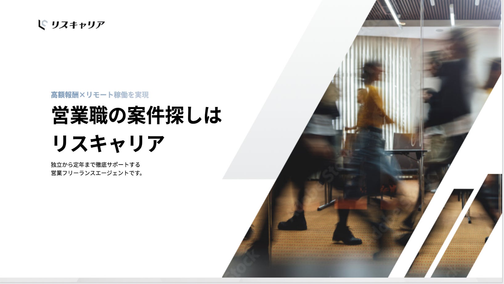 リスキャリアは、固定報酬の営業フリーランスに特化したマッチングサービスです。