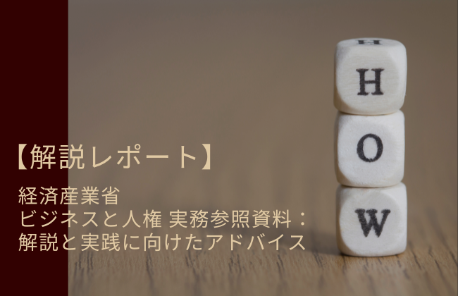 さらに、この度の経産省資料の発表を受けて、より多くの日本企業の取り組みを後押しすべく『【解説レポート】経済産業省 ビジネスと人権 実務参照資料:解説と実践に向けたアドバイス』と題した解説レポートを公開しました。経産省資料のポイントや意図を解説しながら、企業の実務担当者にとって有益と思われる参考情報・ツール等も併せて紹介する内容となっています。