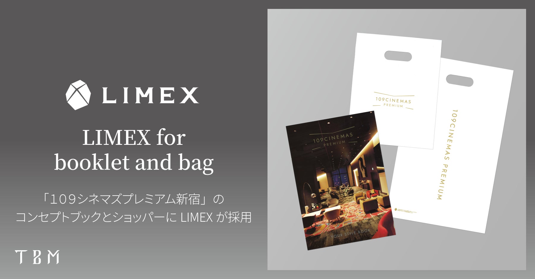 株式会社TBM(本社:東京都千代田区、代表取締役CEO:山﨑敦義、以下TBM)の石灰石を主原料とする新素材LIMEXが、シネコン「109シネマズ」の運営など映像事業を展開する株式会社東急レクリエーション(本社:東京都渋谷区、代表取締役社長:菅野 信三、以下東急レクリエーション)の新店舗「109シネマズプレミアム新宿」(2023年4月14日(金)に開業予定、東急歌舞伎町タワー内)のコンセプトブックとショッパーに採用されました。