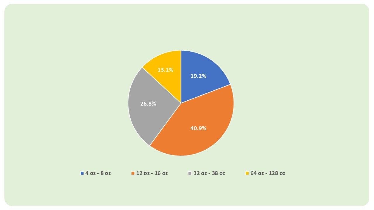 2021 年には 12oz-16oz のセグメントが 40.9%で最大のシェアを占め、年平均成長率(CAGR )6.4%で成長すると予測されます。通常口のパイントジャーは、象徴的なメイソンジャーの形を取り、高さ約5インチの大きさで、人気のある選択肢です。