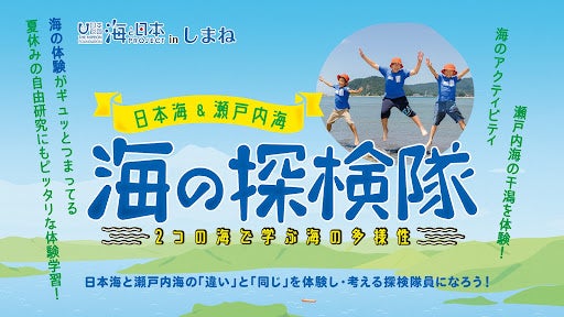 海と日本プロジェクトinしまね実行委員会は7月9日(土)、7月23日(土)~24日(日)に、小学5・6年生20人が、2つの海の「違い」と「同じ」を体験し考え、美しく豊かな海の保全につなげることを目指す体験学習「日本海&瀬戸内海 海の探検隊」を開催いたします。このイベントは、次世代へ海を引き継ぐために、海を介して人と人とがつながる“日本財団「海と日本プロジェクト」”の一環です。