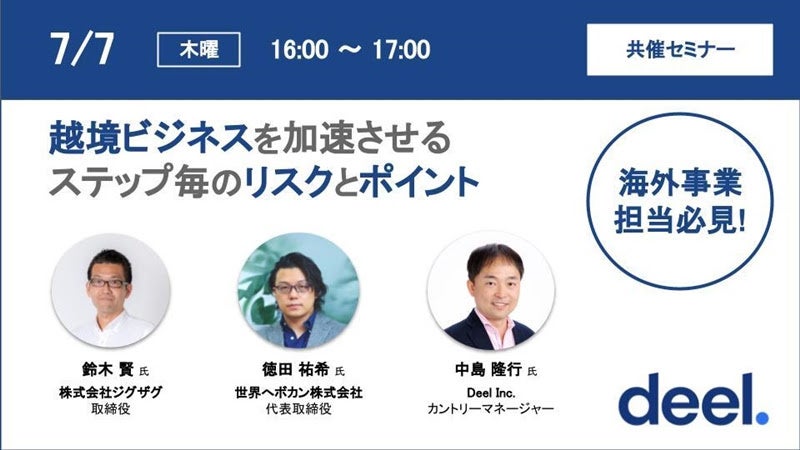 近年、技術や流通サービスの拡充により、国境を越えたビジネスのハードルが下がりつつあり、適切なタイミングで適切な手法やサービスを用いることで、ローリスク、ローコストで越境ビジネスを展開することができます。今回は越境ビジネスの開始から拡大期までを3つのステップに分けて、事業展開する際リスクやポイント、おすすめのサービスを、3名の越境事業のプロフェッショナルよりご紹介します