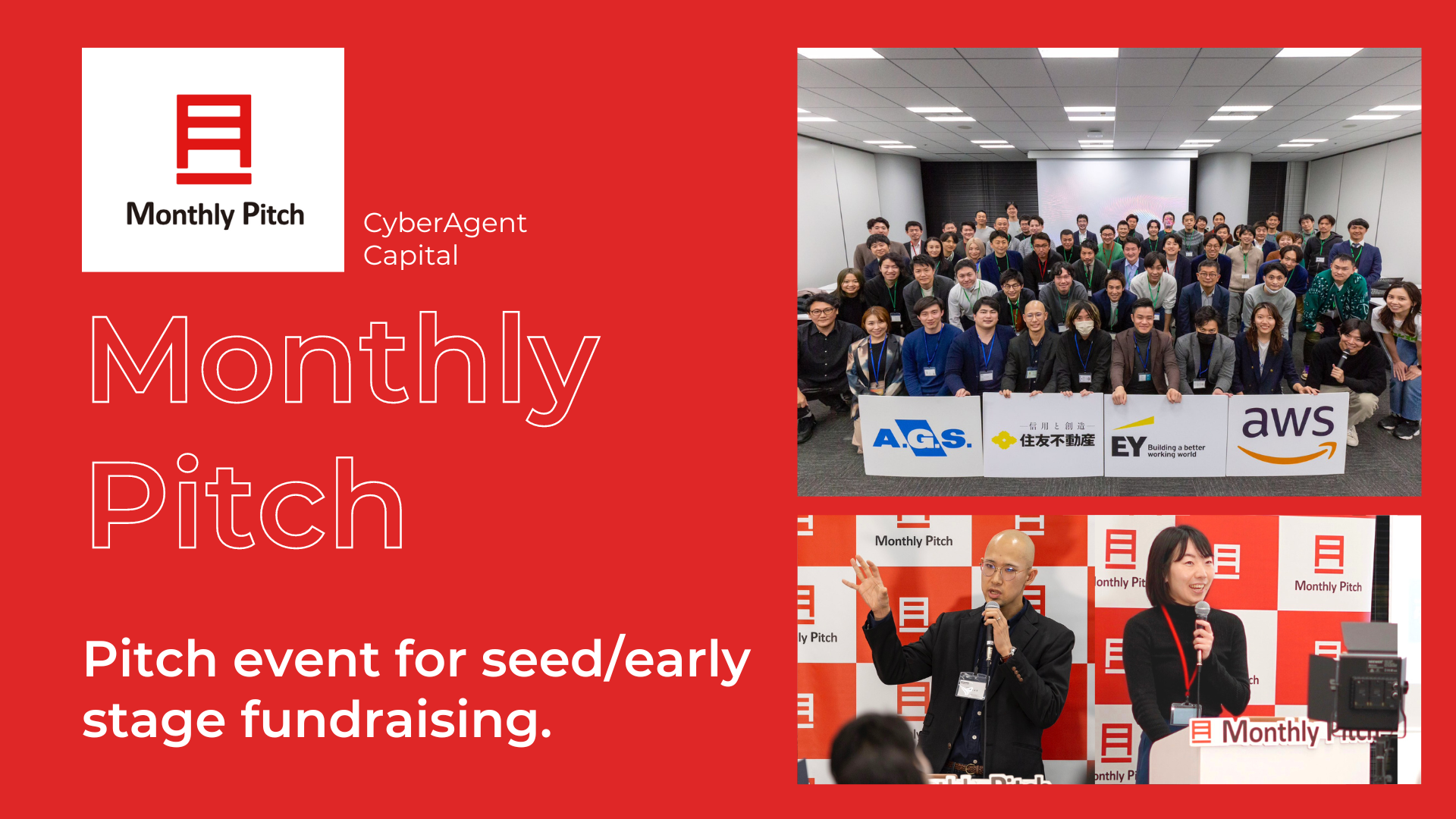 Monthly Pitchとは、創業期(シード・アーリー)の資金調達のための各月開催のピッチイベントです。スタートアップは選抜制、投資家(著名VC・エンジェル)は完全招待制です。