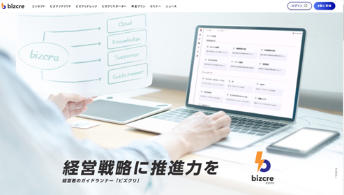 新しくなったbizcreは、「経営者のガイドランナーとして経営戦略を推進する伴走支援」をコンセプトに機能、サービスをさらに充実した内容となっています。