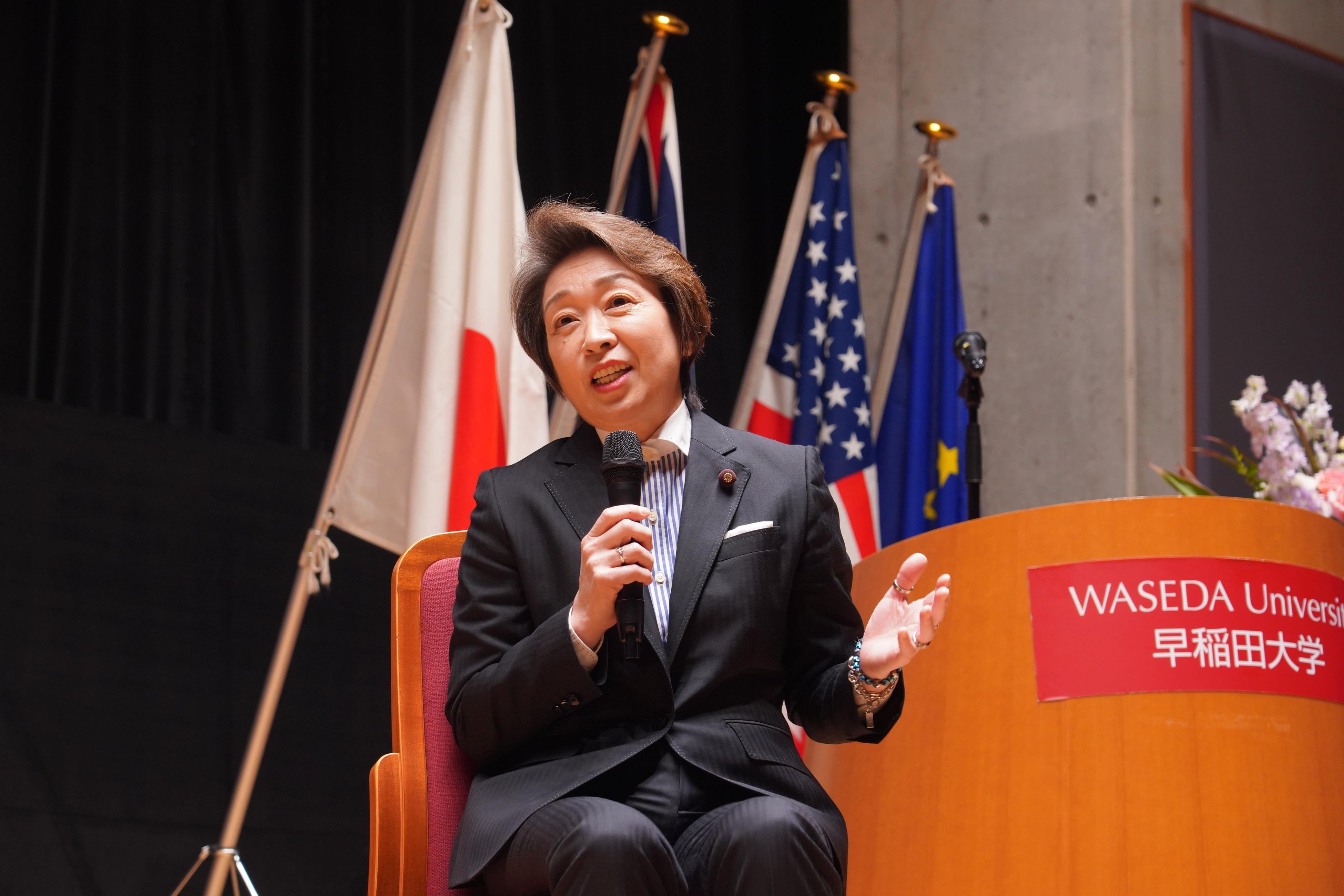 第1部の有識者講演会では、国際問題について、政界・経済界・学術界などの第一線でご活躍されている方々からご講演いただきました。内閣総理大臣 岸田文雄様、経済産業大臣 西村康稔様よりビデオメッセージをいただき、会場が大きく盛り上がりました。加えて、外務省 外務審議官 小野啓一様より対面でG7サミットのご説明をいただき、参議院議員 東京オリンピック競技大会・東京パラリンピック競技元大会担当大臣 橋本聖子様よりイベントに参加しているユースの方々へメッセージをいただきました。その他、第1部では各界のリーダーとユースのトークセッションや3月に行われた「高校生G7サミット2023」の提言発表などが行われました。