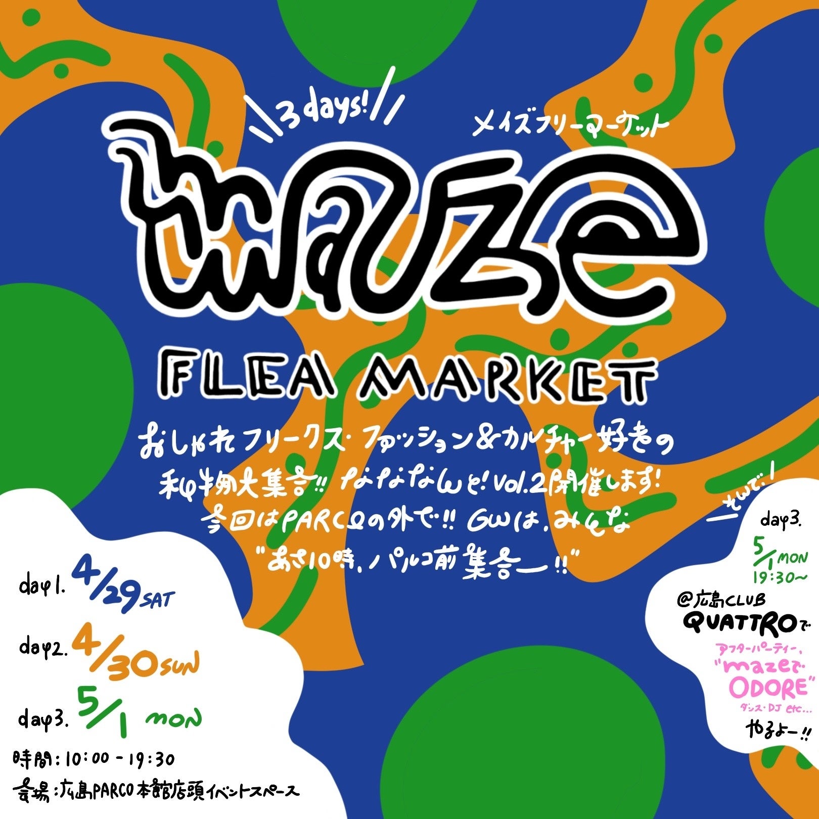 広島PARCOではこの度、「maze FLEA MARKET(メイズフリーマーケット)」を開催します。