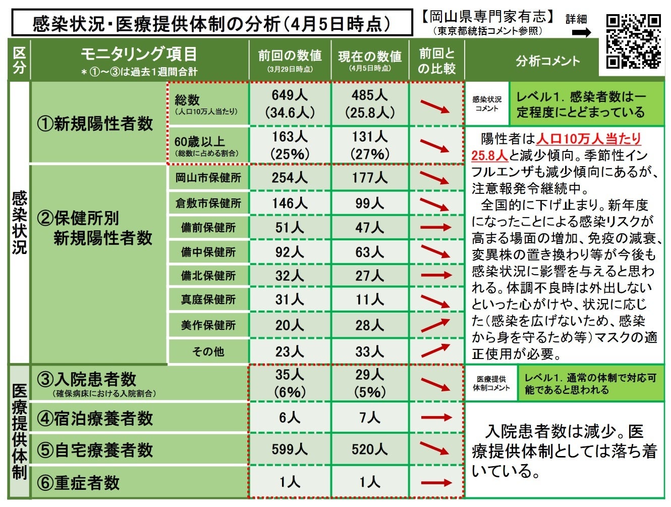 ◆感染状況・医療提供体制の分析〔2023年 4月 5日(水)時点〕