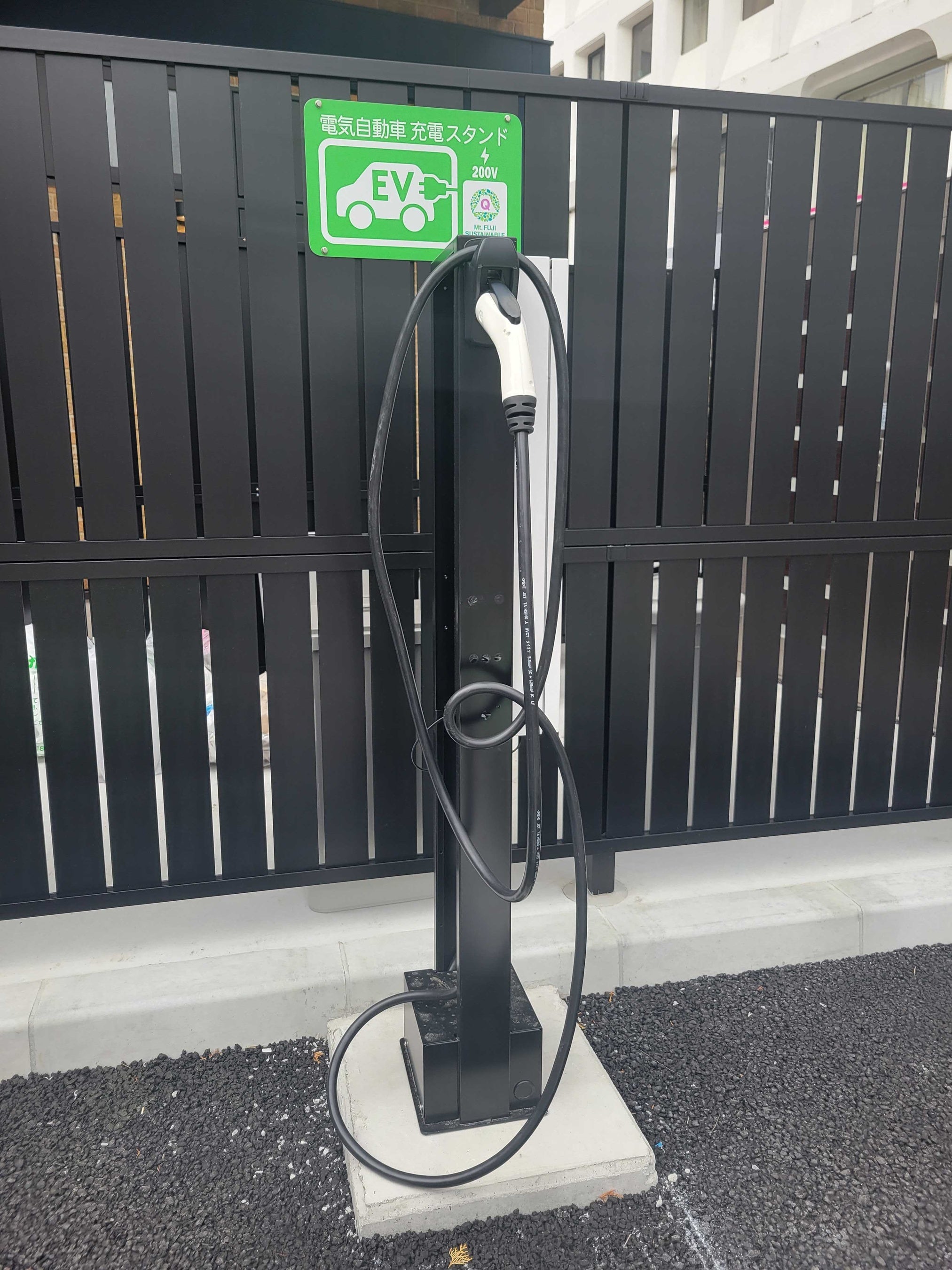 隣接する有料駐車場にEV充電エネチェンジの普通充電器2基を設置しております。電気自動車でお越しのお客様は充電をしながら当施設でお過ごしいただけます。また施設利用の方のみならず、沼津駅を利用する方々や地域の方々のEVシフトへ貢献いたします。