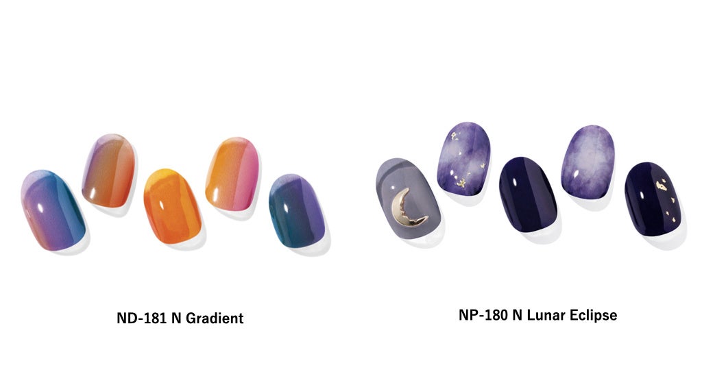 従来のネイルシールとの違いは、柔らかく伸縮性があり、どんな形や大きさの爪にも簡単にフィットしやすいのが特徴。(※仕上げにはジェルランプが必要です)ベース、カラー、トップの3層ジェル構造にすることで、より鮮やかな発色と光沢感、そしてジェルならではのぷっくりとしたボリューム感を実現。